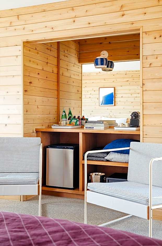 This studio features a coffee machine, small refrigerator, seating area and a semi private balcony or deck.